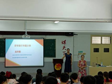 活动开始,龙雨萍老师向同学们介绍了襄阳康华国际旅行社副总经理吴开美的相关情况。吴开美为我系2009届旅游管理专业的优秀毕业生,是我院优秀校友代表。吴开美副总经理向同学们讲解了研学旅行的发展前景及襄阳市研学旅行发展现状。接着,以个人成长经历为例和同学们交流如何做好个人的职业生涯发展规划。