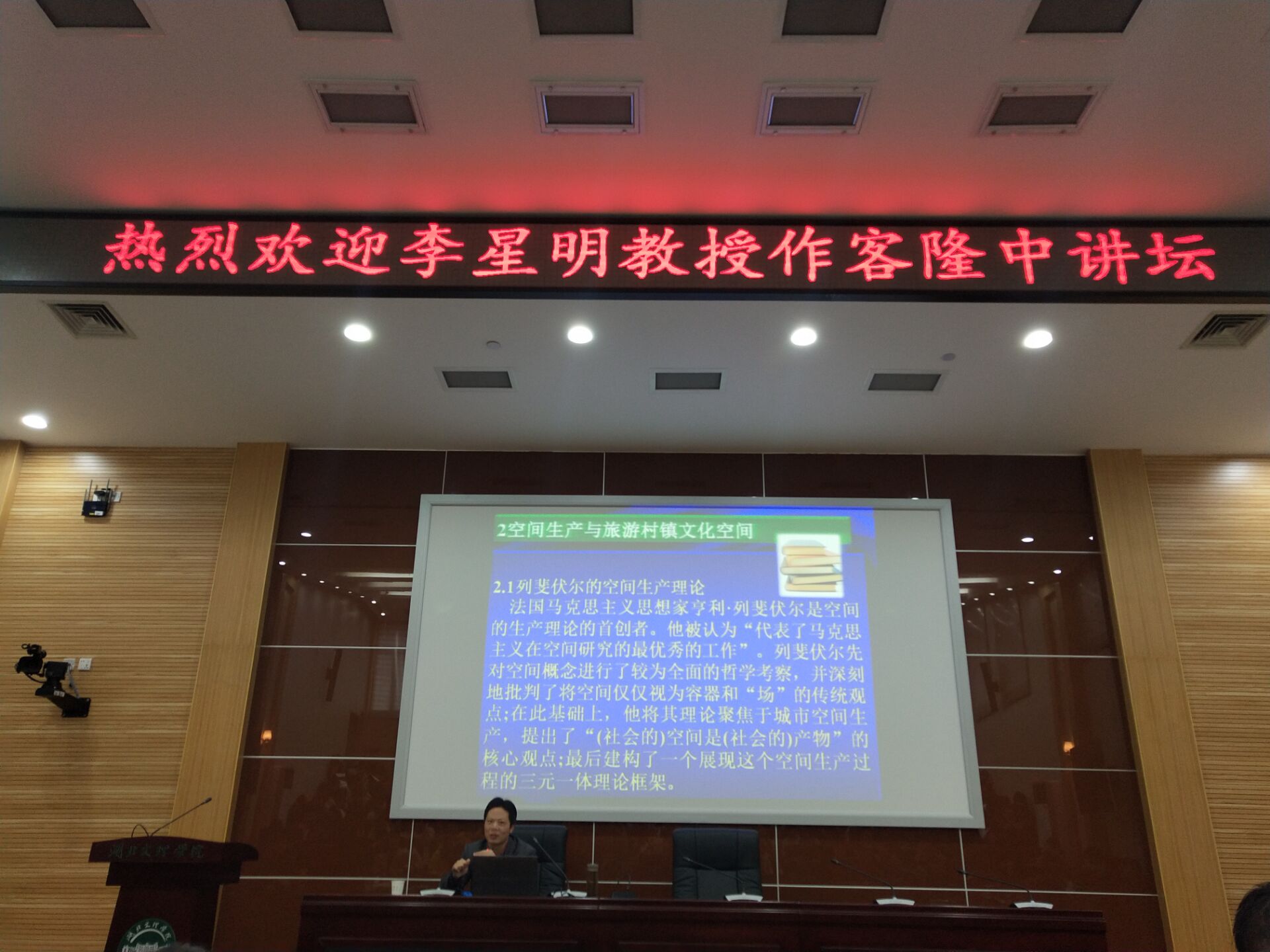 李教授做完讲座,师生们意犹未尽,展开热烈讨论。旅游管理系朱运海博士说到:李教授的讲座有很强的地理学背景,紧扣人地关系这条总纲,从空间生产和文化生态理论,结合实际规划案例对文化资源发掘、文化旅游产品创意策划、无形文化有形化展示和旅游要素产业化布局进行了详细的阐述!整个讲座贯穿着文化进化思想、具有浓郁的跨时空古今对话和跨地域文化比较的大视野,同时也让我们感受到一个专家学者文化创造的理想诉求与文化产业化必须直面现实的务实精神!