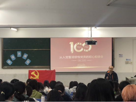 孙小舟在讲课中强调入党誓词体现了党与时俱进的精神品质、红色精神的一脉相承。建党以来,新党员一般都要面对党旗,宣读入党誓词,这意味着一种身份的转变、责任的承担和忠诚的承诺,意味着以后的人生将具有更加坚定的理想和信念。孙小舟还提到:要让我们党的优良传统作风在青年一代得到传承,最关键的是传承崇高的理想信念,理想信念坚定了,忠诚于党的意识强化了,红旗才能传千秋。