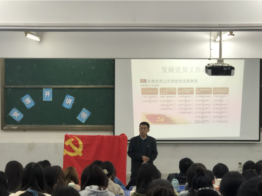 鲁宏图从入党积极分子的确定和培养教育,发展对象的确定和考察 ,预备党员的接收 , 预备党员的教育、考察和转正发展,党员工作的领导和纪律等方面进行讲解。同学们了解到了入党的条件与流程,党的先进性,党员的模范带头作用,党的纪律,方针政策等,使学生党员更加了解在大学阶段如何成为一名合格的共产党员,如何开展和积极支持党的工作,如何树立踏实肯干的工作作风,如何服务同学,为学生党员的素质及党性修养的提高奠定了坚实的基础。