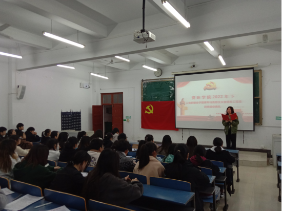 会议伊始,在党支部副书记袁佳慧的带领下,全体起立,奏唱国歌。接着是由袁佳慧同志带领大家宣读入党誓词。第三项环节是党校优秀学员代表发言,由阳玉琳同学发言。第四项环节是青马班优秀学员代表发言,由杨烁同学发言。第五项环节是团委书记李宇发言。李宇老师在发言中希望同学们继续加强理论学习,坚定理想信念;端正入党动机,主动接受党组织的教育和考验;坚持学以致用,时刻发挥先锋模范作用,以实际行动争取早日入党。并宣布资环学院第28期党校和第六期青马班正式结业。