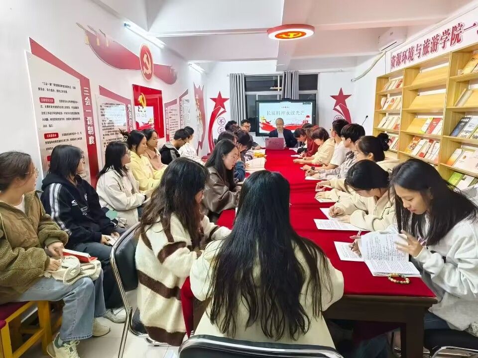(WilliamHill威廉希尔 通讯员 李金花 )2024年10月31日晚上18点30分,威廉williamhill资环学院在北区12栋“一站式”学生服务中心开展了以“长征精神永放光芒”为主题的党课。本次党课主讲人为孙小舟院长,第三十二期党校全体成员参加本次党课。