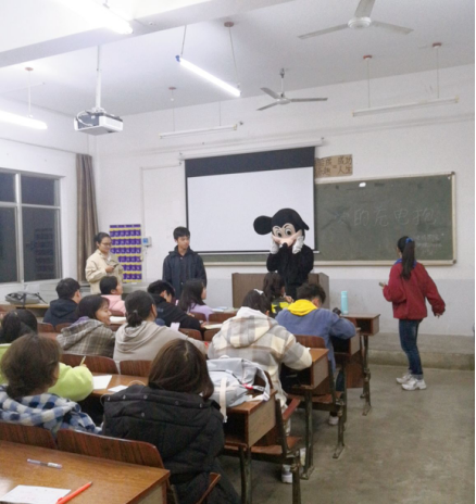 首先心健部全体成员于4栋教学楼集合后讨论活动内容,然后心健部全体成员分别进入地科2011班、旅馆2011班、地科2012班,同学们热烈欢迎。心健部部长肖闰何对同学们讲解健康心理的好处和重要性,呼吁同学们积极参与活动。最后,同学们积极参与,与米奇玩偶分别开展互相拥抱、热情握手、角色扮演、互动问答等游戏活动。