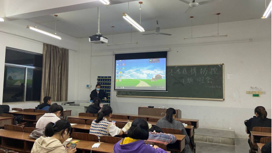 班会伊始,班长徐茗曦首先对班级本周的各项事宜进行总结,强调规范学生行为习惯,抓考勤、抓学风,并对寝室建设作出要求。紧接着,徐茗曦突出冬季疫情防控主题,强调疫情形势仍然复杂严峻,反复提醒学生自觉遵守常态化疫情防控下各项要求。然后,徐茗曦强调了四点,一是告知全体学生,学校目前仍然按照《关于调整2020年秋季学期教学安排的通知》要求开展各项教学活动;二是继续严格落实封闭式管理各项要求,坚决做到非必要不出校、非必要不出市,学生外出要履行请假销假手续;三是坚持做好一日三测,执行日报告制度,出现情况及时上报学校疫情防控指挥部;四是做好在外实习学生的疫情防控知识宣讲和安全管理工作,要求学生遵守当地疫情防控要求,实习结束需返校应提前告知辅导员或班主任,如从中高风险地区返校需提前报告并按照襄阳市、学校疫情防控要求返校。