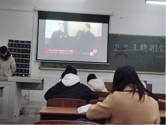 会议伊始,体育委员盛重向同学们强调了卫生安全的重要性以卫生教育的必要性。随后,盛重播放了一段关于卫生教育的相声视频,以幽默风趣的方式来提醒同学们注意个人卫生和寝室卫生。最后,盛重呼吁同学们积极参与到校青联的义务劳动当中去,为美化校园环境献出一份力量。