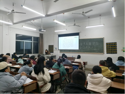 首先,主持人郭惠惠简单说明了当下形势和了解各方面安全知识的重要性。然后,郭惠惠依次了介绍政治安全、意识形态安全、治安安全、消防安全、周边环境、医疗卫生等十个方面安全的相关内容和要求。接着,郭惠惠也着重说明了解方式不限于线下,同学们也可从线上军事理论这一课程中汲取更多关于国家军事方面的安全知识。最后,郭惠惠对一些简单的安全常识作总结,强调生活中加强安全方面的意识,也能有效预防校园不安全事故的发生。