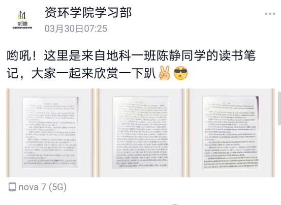 (WilliamHill威廉希尔 通讯员 余思羽)为了激励同学们对国学经典有更加深入的学习,并对上一阶段优秀读书笔记进行表扬。2021年3月末4月初,资环学院开展了优秀读书笔记评选展示活动,参加此次活动的有资环学院20级全体成员。