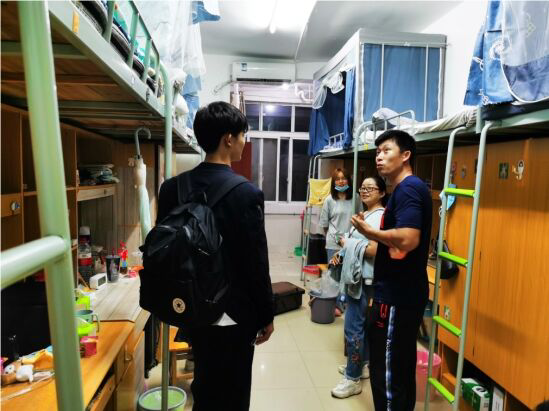 进入学生公寓后,康玲老师、李海老师与同学们展开亲切交谈,向同学们介绍自己后,叮嘱同学们在大学集体生活中寝室就是家,要团结协作,多多交流。同时,康玲老师对寝室内行李摆放提出建议,确保同学们能享有一个舒适整洁的休息环境。