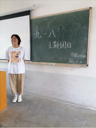 首先,马梓琪带领大家回顾了“九一八事变”的经过,“九一八事变”把中国人民拖入了苦难的深渊,给中华民族带来了巨大的损失,激起了全国人民的抗日怒潮。随后,马梓琪随机请几位同学谈了自己关于九一八事变的感受。同学们表示“忘记历史就等于背叛,我们要牢记历史,勿忘国耻!”“我们每个人都要立足实际,为中华民族的复兴尽自己的力量。”最后,马梓琪表示,开展纪念“九一八事变”主题团日活动,主要目的是通过再次学习了解祖国那段苦难屈辱的历史,以及“九一八事变”引发的全国人民的强烈愤慨和反抗的历史经历,培养青年大学生的爱国主义情感,凝聚复兴中华的正能量。