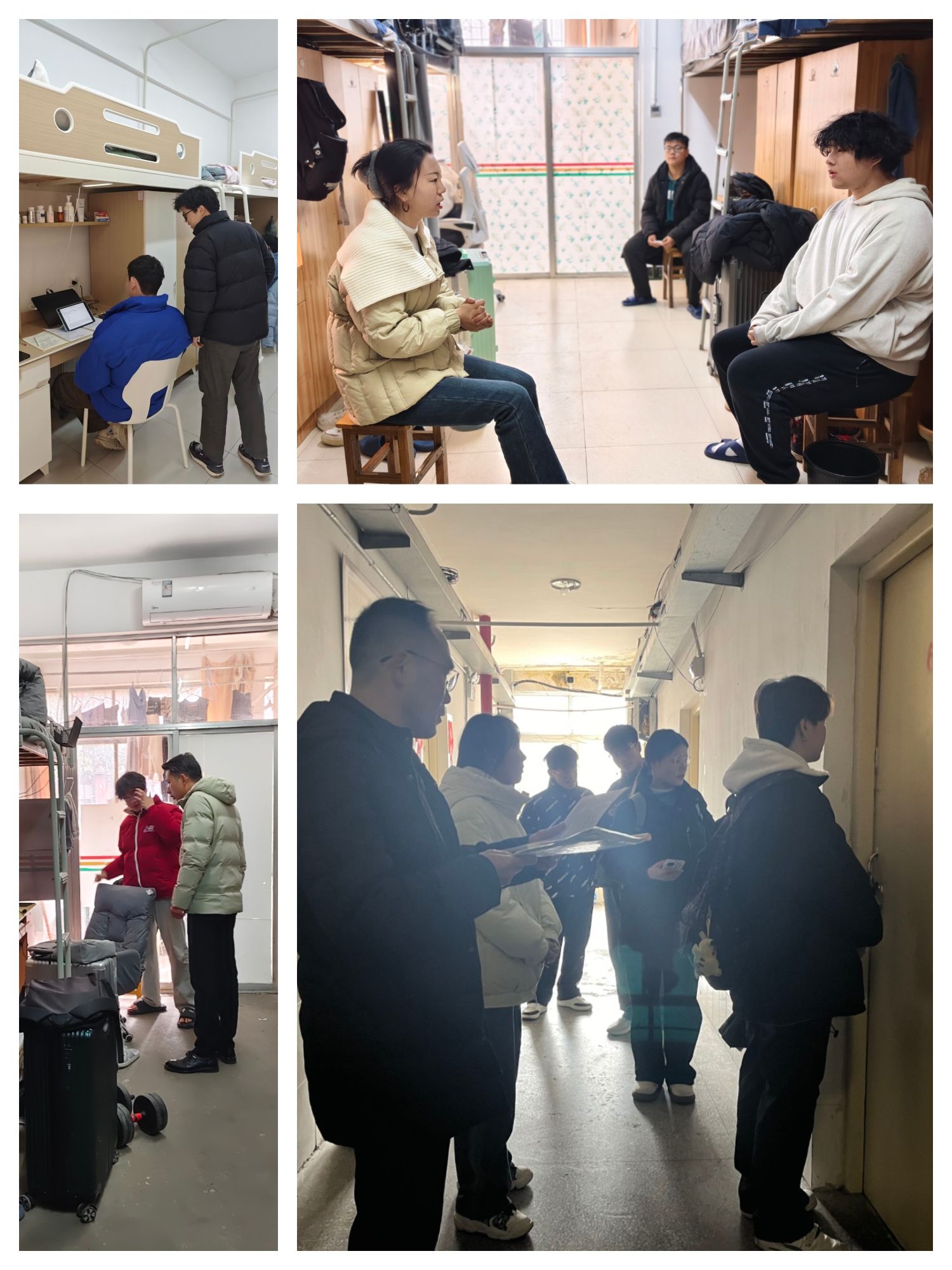 (WilliamHill威廉希尔通讯员 魏金风)2025年春季学期伊始,为精准把握学生寒假返校后的状态,全方位了解学生思想动态,切实关心学生生活,确保新学期开学工作顺利进行,资环学院组织全体班主任与辅导员,深入学生宿舍,开展了一场暖人心扉的“寝室暖心行”走访活动。