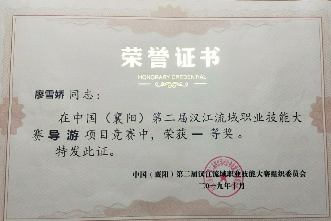 旅管专业学生参加汉江流域职业技能大赛获得一等奖