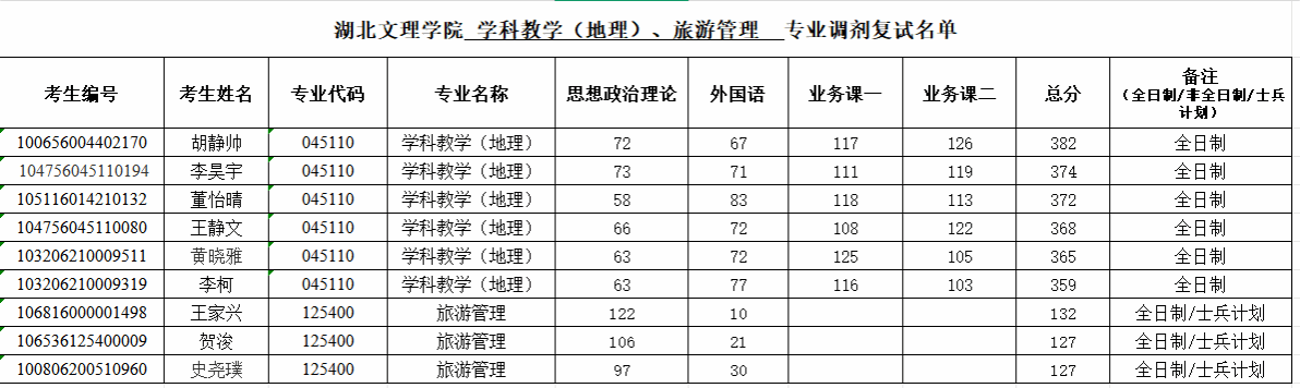 2026年WilliamHill威廉希尔学科教学(地理)、旅游管理硕士研究生招生调剂复试考生名单