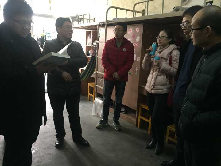 来到考研寝室,张院长详细了解了每名考研学生的情况,得知几名学生预计需要二次调剂,他要求各系主任和班主任老师一定要结合自己专业特点,发挥自身资源优势为需要调剂的同学做好服务和跟踪关心。看到正在拿起新课本《地理信息系统》的16级地理科学同学,他再三叮嘱到一定要做好这门课的预习,多到图书馆查相关材料,不懂的问题要及时跟专业老师联系。来到学生干部寝室,杨书记强调,资环学院是新成立的学院,学生工作围绕学院中心工作必须把基础打牢,营造良好的学风。团学干部是学生工作的主力军,要有理想、有本领、有担当;要增强四个意识;要充分发挥伍自我管理、自我服务、自我教育功能。走访过程中领导们与学生进行了详细交流,把学生提出的各种问题、困难、建议都记了下来,同时鼓励同学在新的学期珍惜时间,刻苦学习,要求大家一定注意人身财产安全,遵守学校作息时间,以更好的精神状态迎接新学期。