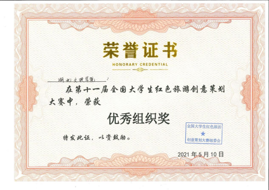 (资环学院教工通讯员朱运海))在近日举办的第十一届全国大学生红色旅游创意策划大赛(以下简称“红旅大赛”)上,资环学院朱运海、汪胜兰老师指导的参赛作品《追寻红色印记、品读江南历史》、《红忆绿意》分别获得了华中地区二等奖。因表现突出,学校荣获大赛组委会颁发的“优秀组织奖”。