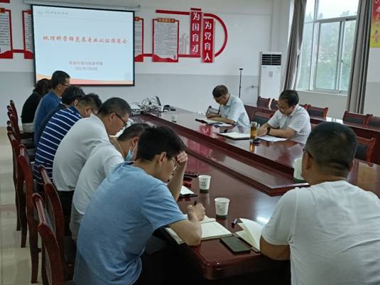 地理科学系主任李权国就地理科学专业人才培养方案、课程教学大纲、教学支撑材料、毕业生培养质量监测、自评报告撰写等已开展的工作、认证过程中需解决的具体问题和困难以及下一步的工作计划进行了汇报。杨霄就学院师资、办公场地、与中学进行联合培养等方面对专业认证工作的重难点问题提出了解决思路。张弢强调,资环学院将全力以赴、全员参与、全面推进师范专业认证工作,提高人才培养质量。