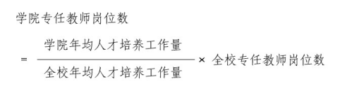 各二级学院专任教师岗位数按照学院实际年均承担标准学时数占全校年均标准学时总数的比例计算,计算方法如下: